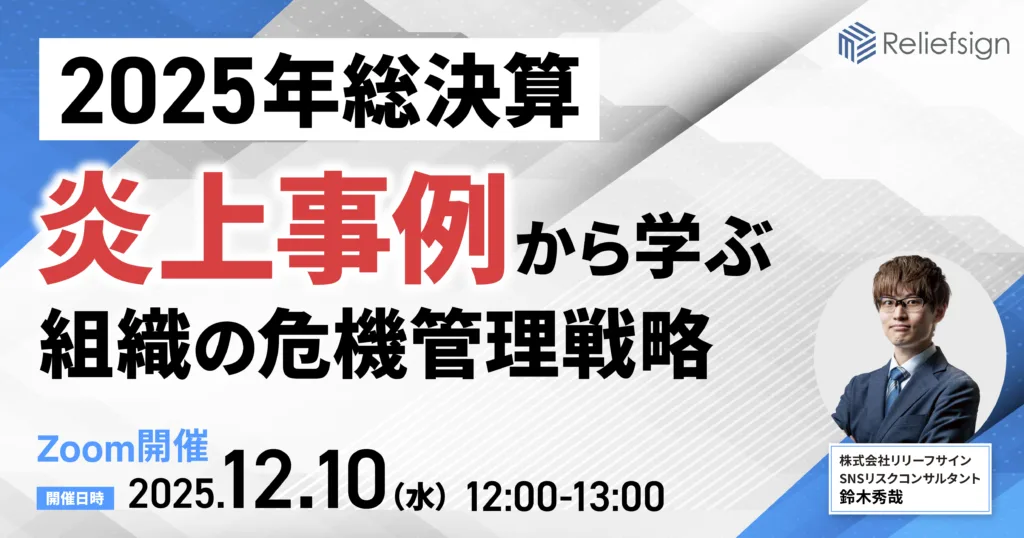 そこで本セミナーでは、2025年の炎上ニュースを振り返り、炎上に発展した要因と対策を徹底解説。